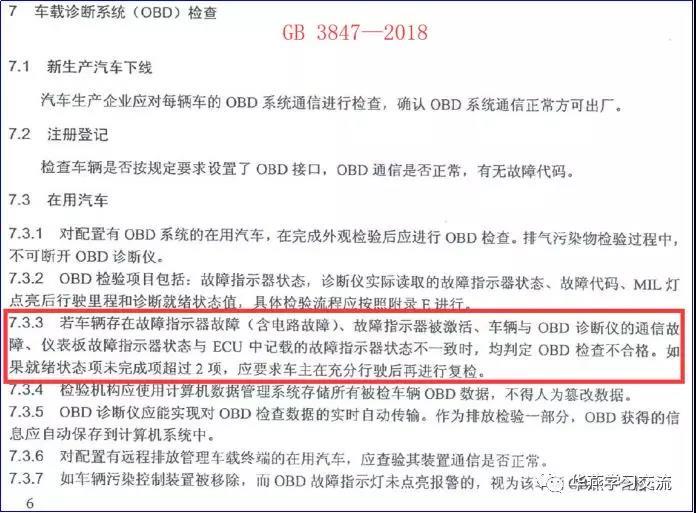 2019年11月1日起,2011年7月1日以后生產(chǎn)的輕型汽油車、2013年7月1日以后生產(chǎn)的重型汽油車、2018年1月1日以后生產(chǎn)的柴油車,如果OBD檢驗不合格,判定排放檢驗不合格。